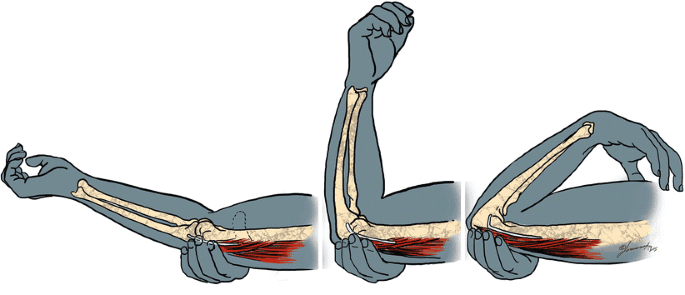 • Pain or tenderness in the elbow, especially when pressing on the triceps muscle.